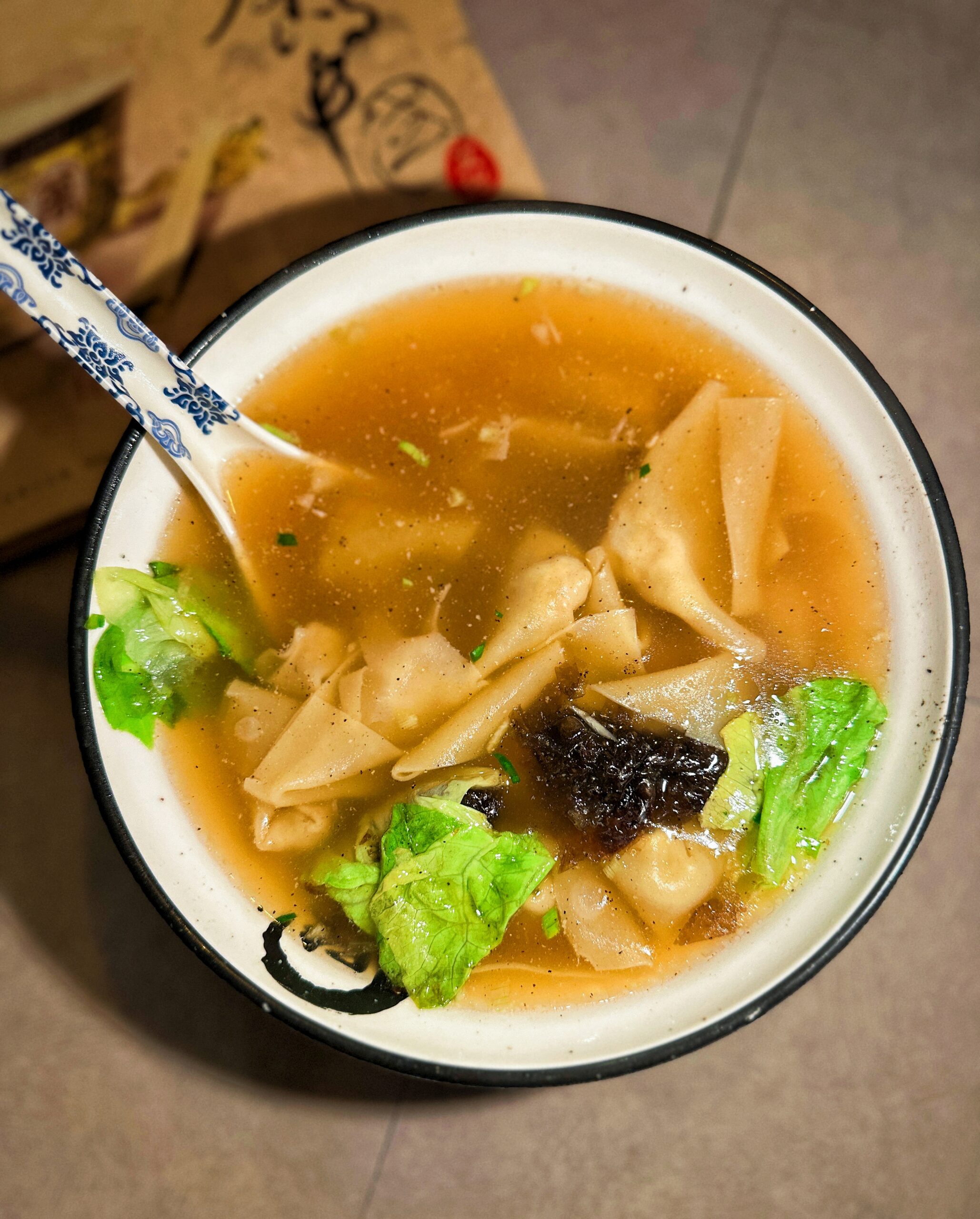 Wontons au viande haché nappés d'huile piquante, poivre du Sichuan et vinaigre noir. Un plat sichuanais audacieux, entre feu et acidulé.