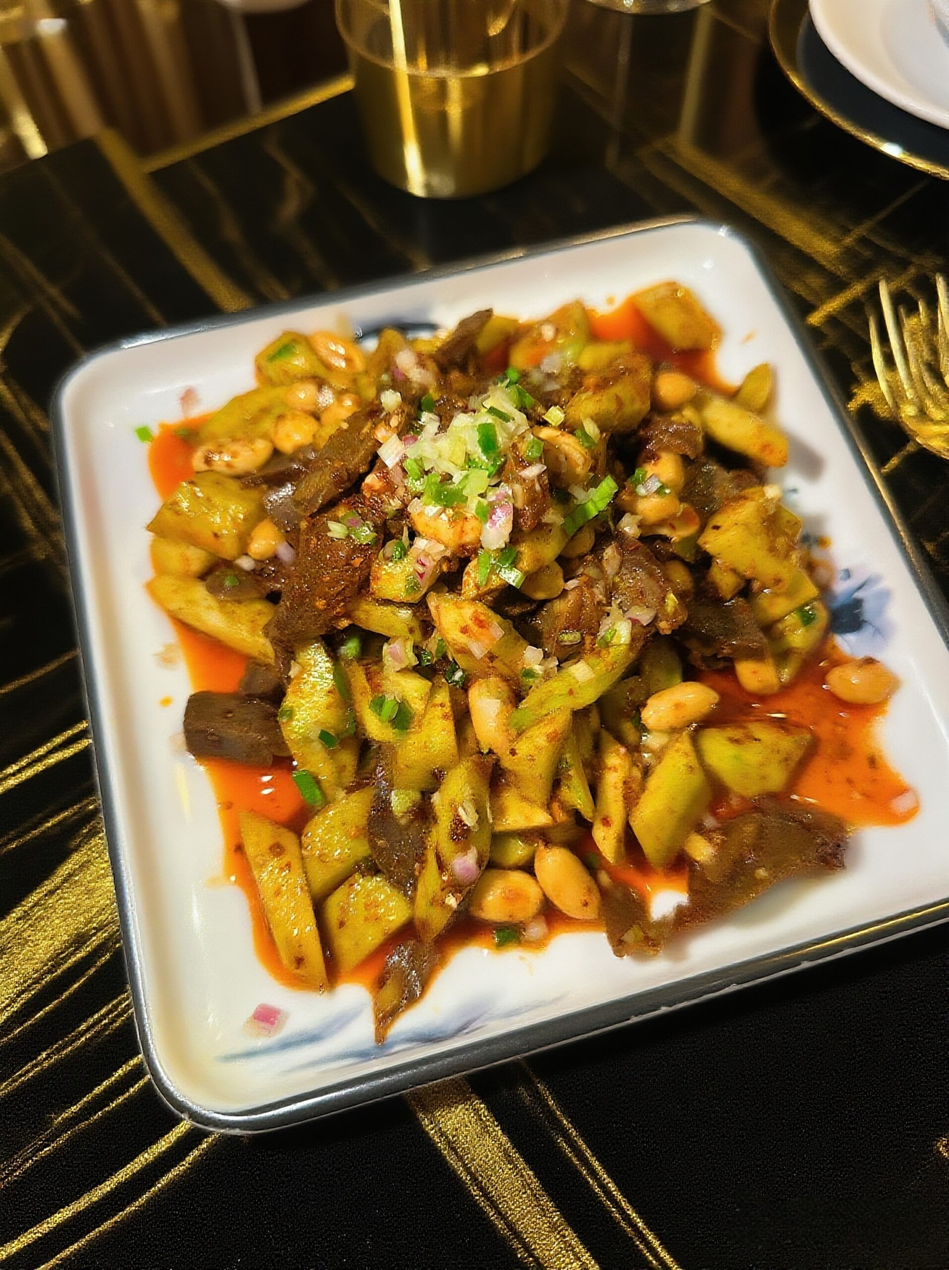 Gésiers croustillants sautés à l'ail, piment et fèves noires fermentées. Un en-cas ou accompagnement audacieux.